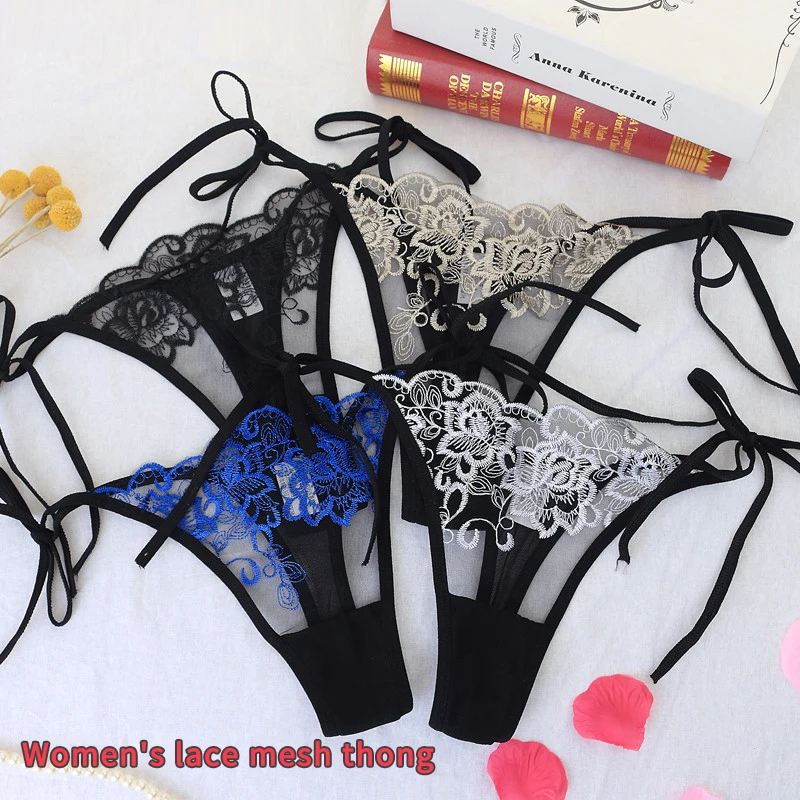 Сексуальные кружевные цветочные стринги, женские трусики с вышивкой, сетчатая пряжа, Прозрачное нижнее белье для молодых женщин и девочек, Лидер продаж, трусики-стринги, стринги