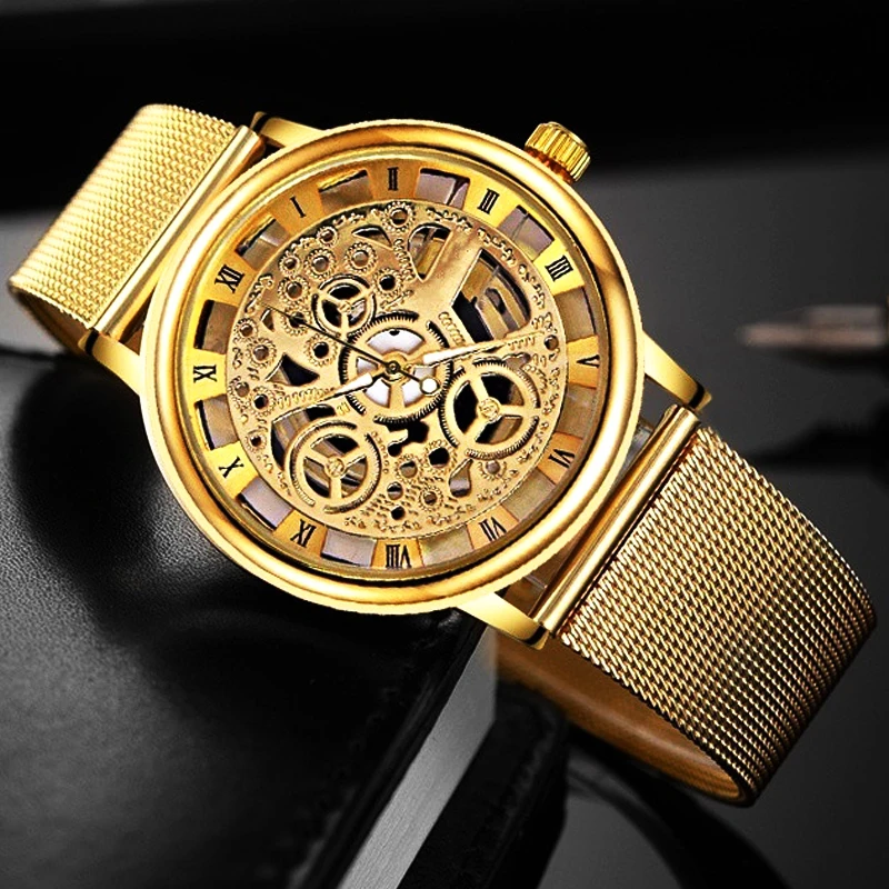 Мужские и женские наручные часы-скелетоны с сетчатым ремешком, квар...