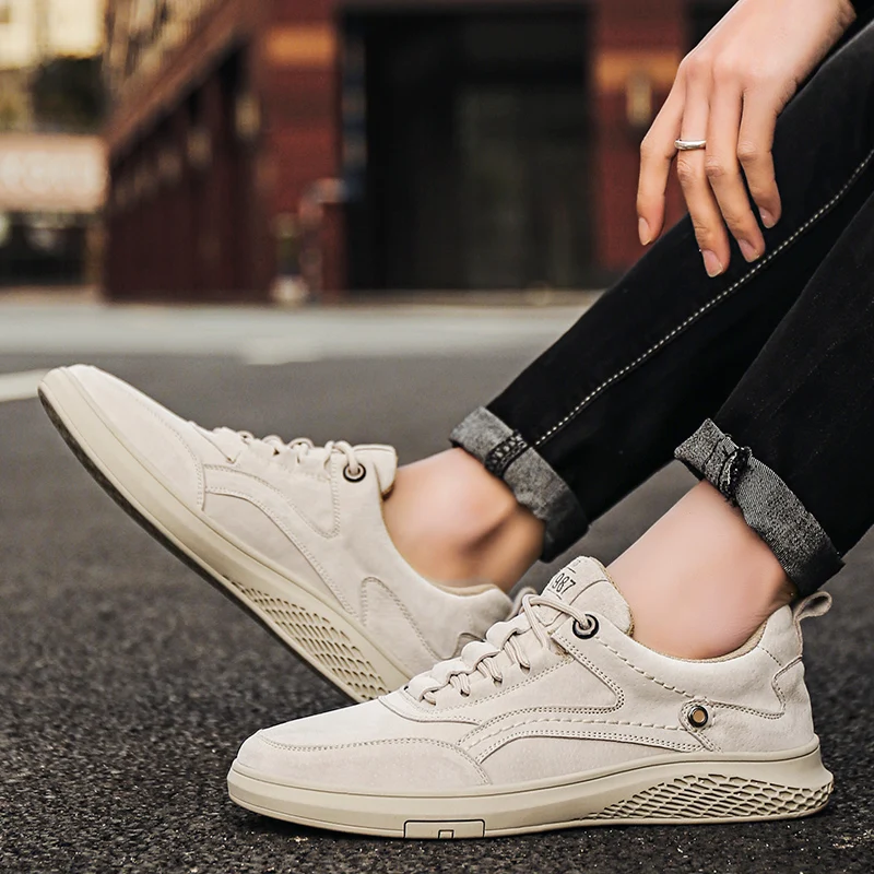 Мужские уличные кроссовки из натуральной кожи, на плоской подошве