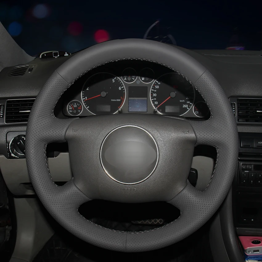 Черная кожаная мужская прошитая вручную чехол рулевого колеса автомобиля для Audi A6 2000 2001 2002 2003 2004 Audi A3 2000 2001 2002 2003 A4 B6 2002