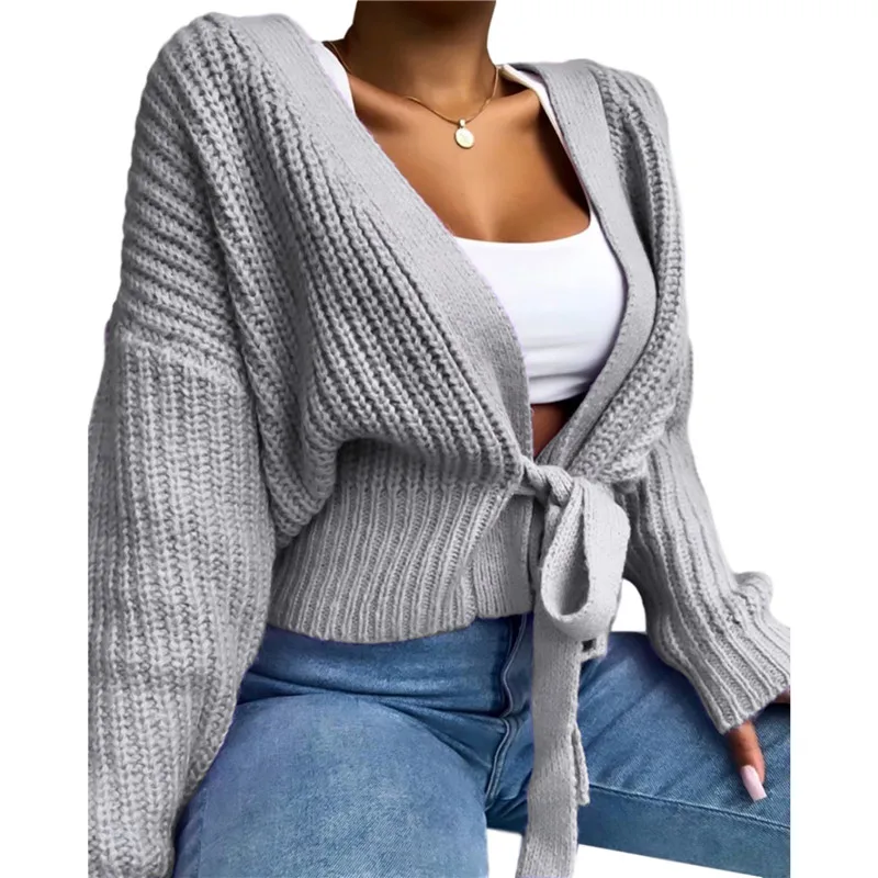 Женский вязаный кардиган с запахом на шнуровке, Женский мешковатый ...