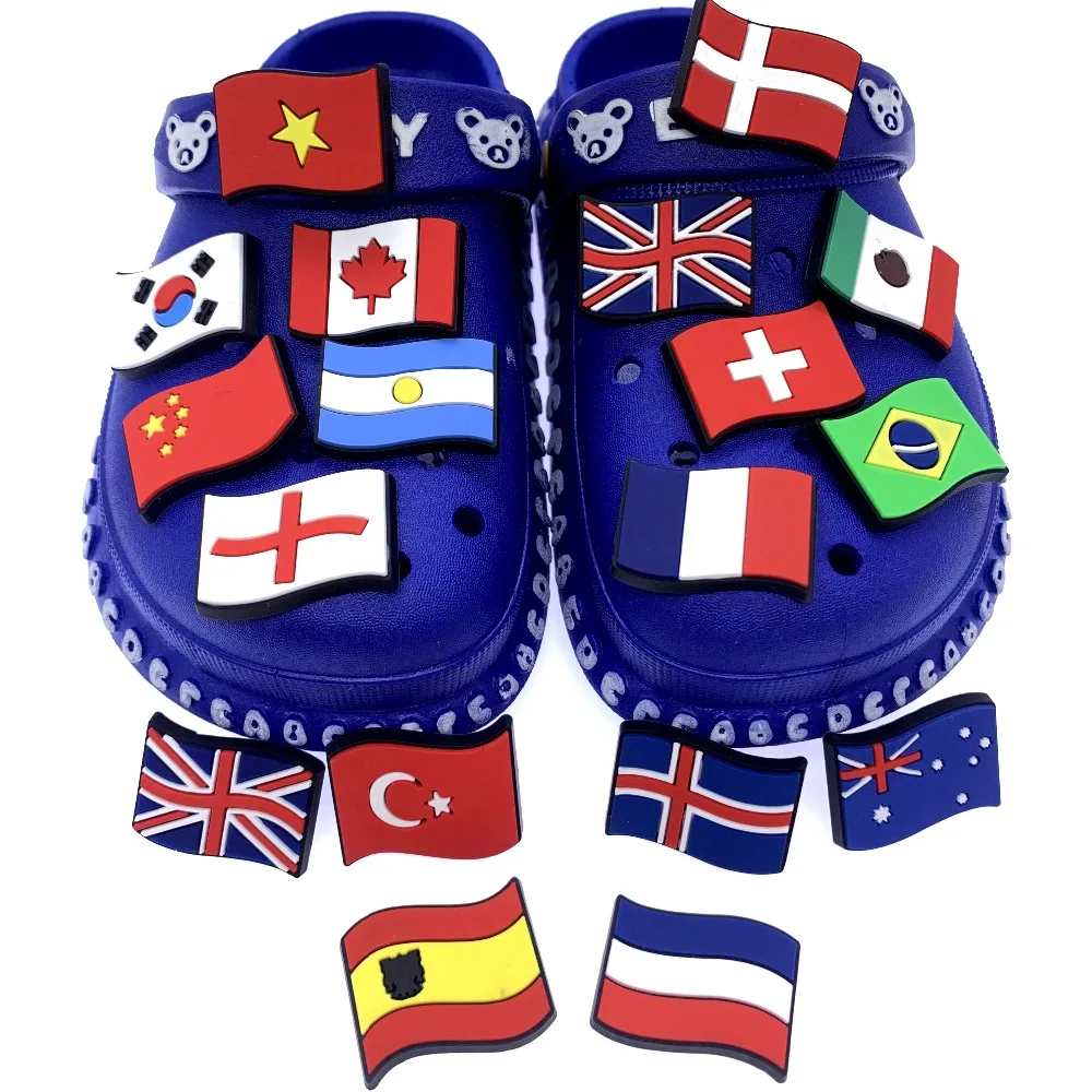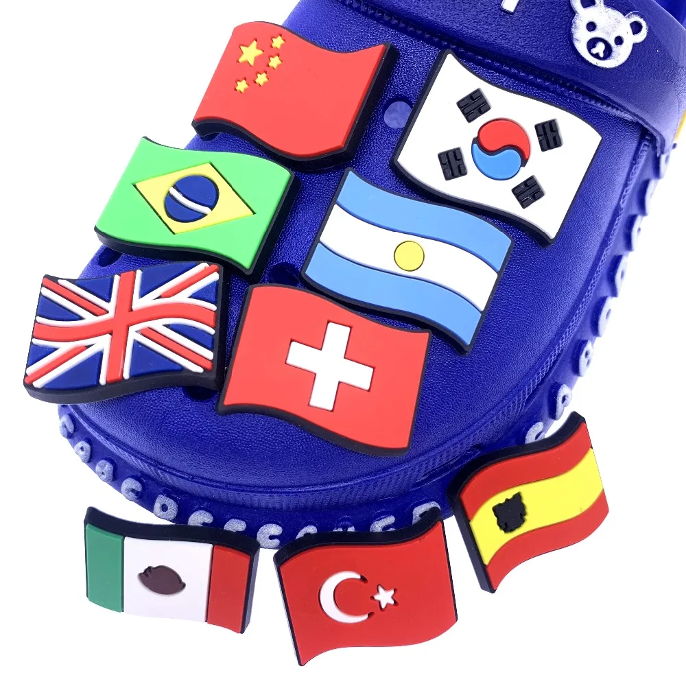 Новое поступление, 1 шт., подвески в виде туфель с национальным флагом, украшение из ПВХ для Croc аксессуары в виде тапочек, для детей, подарки на рождевечерние