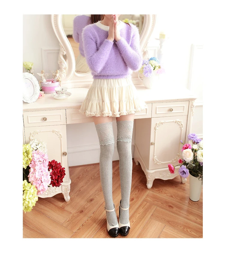 Весенне-осенний японский стиль кружевной чулок для девочек косплей ...