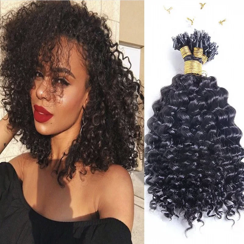 Кудрявые вьющиеся волосы Micro Loop естественного цвета 1 #2 #4 # Малазийские Вьющиеся Micro Loop Ring вьющиеся человеческие волосы 100 Пряди для черных женщин
