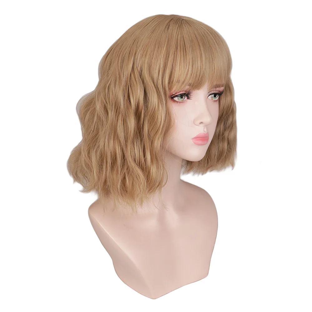 QQXCAIW Женщины Девушки Короткие блонд волнистый парик для косплея ...
