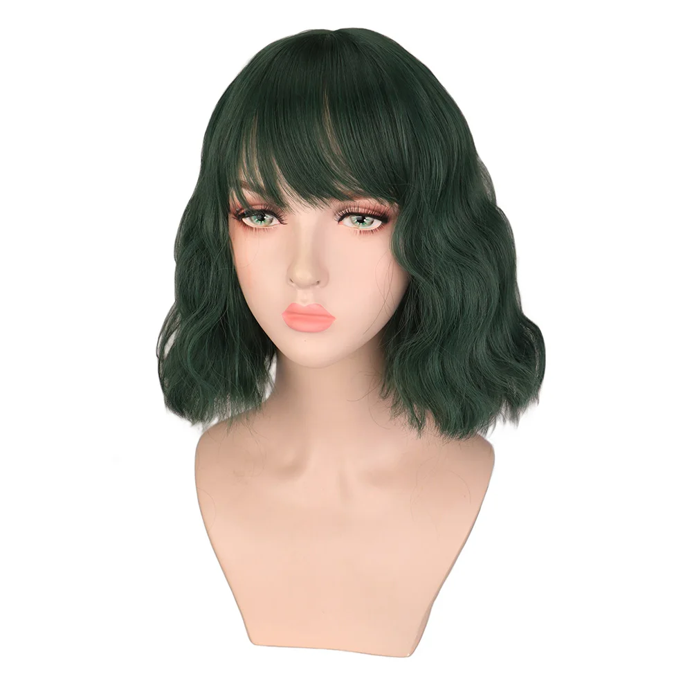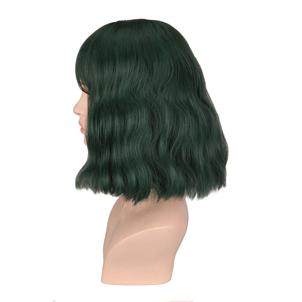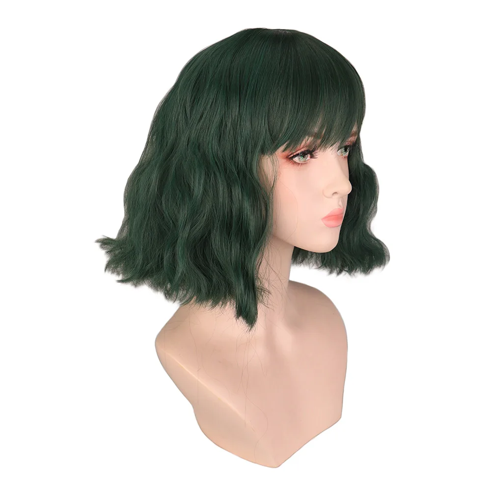QQXCAIW Короткие вьющиеся парики с челкой, женские зеленые, черные, светлые косплей для черных женщин, термостойкие синтетические парики