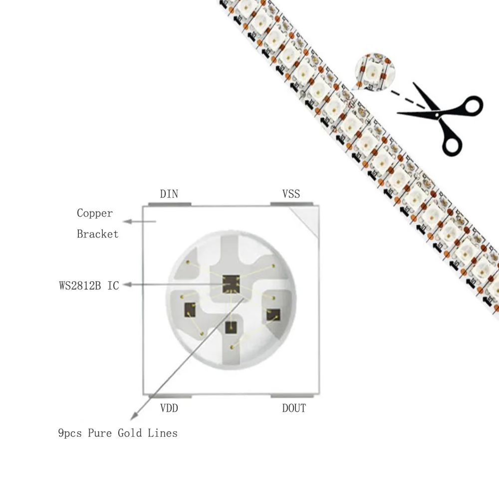 2. Светодиодную ленту WS2812B можно обрезать, покупайте каждый светодиодный чип!