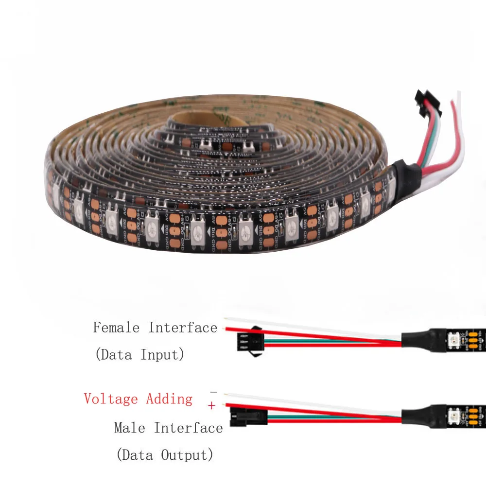 1. WS2812B Светодиодная лента работает от"Блок питания 5 В"(Не входит в комплект) и контролируетсяОдна линия передачи данных от подходящего контроллера(Не входит в комплект).