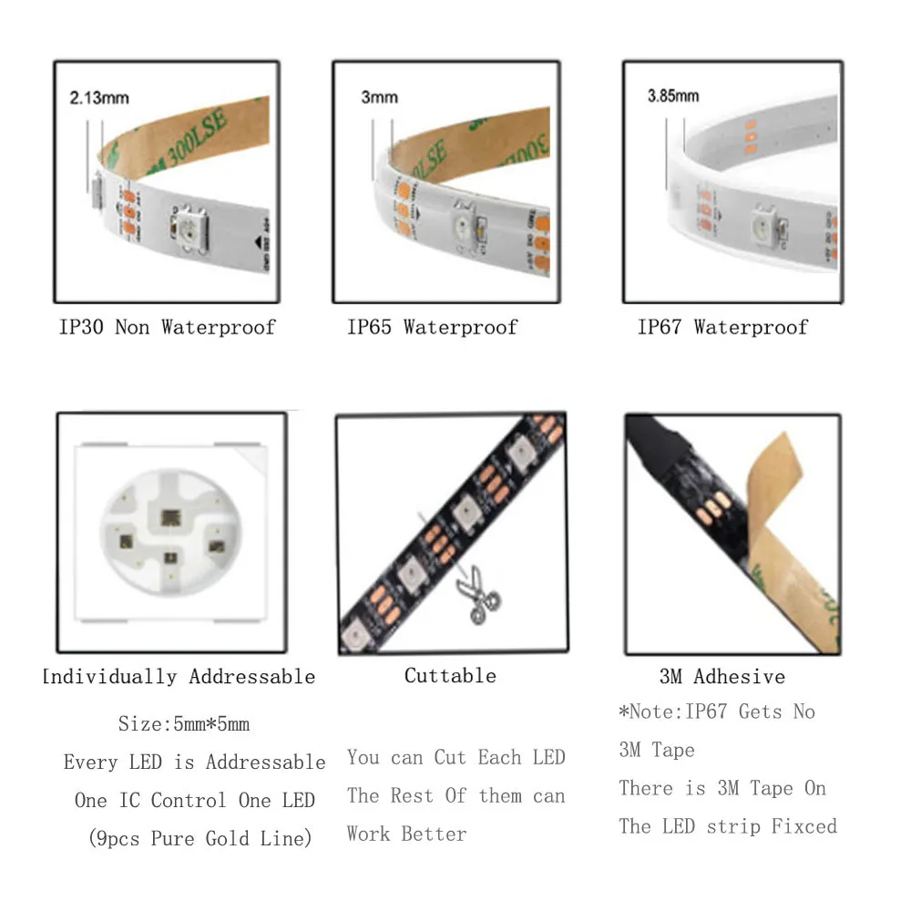 Пиксельная Светодиодная лента WS2812B WS2812 Samrt RGB, индивидуальное управление светодиодами 5050, 30607496 Светодиодный 144, IP30IP65IP67, 5 в пост. Тока
