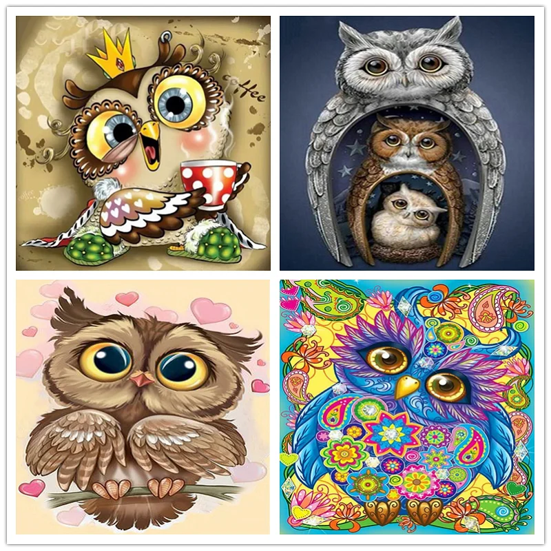 Алмазная 5D живопись luoviзем сделай сам, картина с изображением милой совы, квадратнаякруглая мозаика с рисунком животных, вышивка крестиком, домашний декор