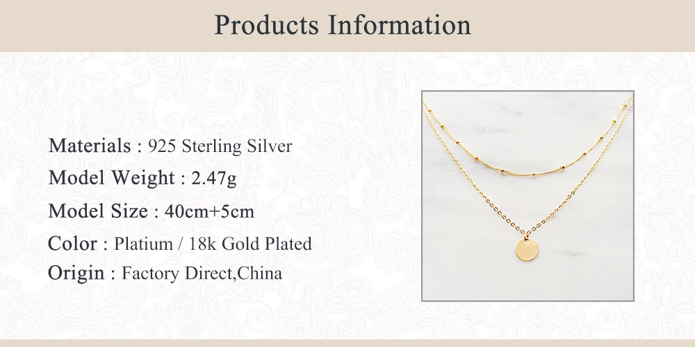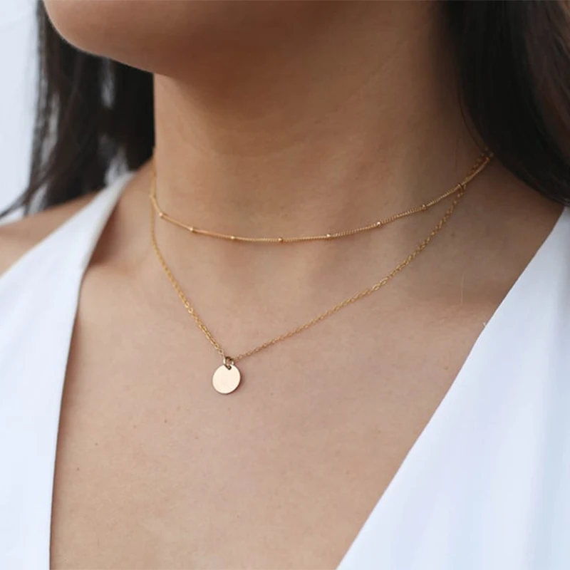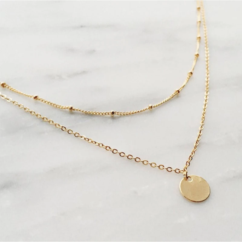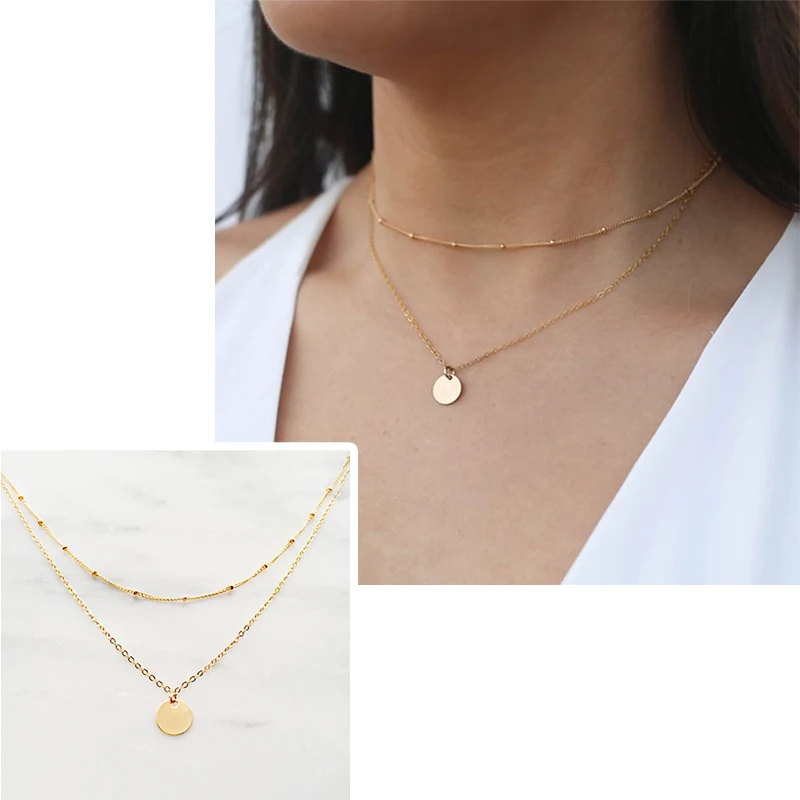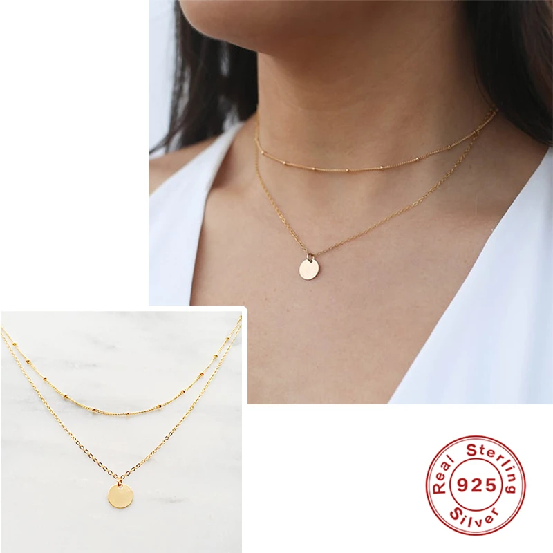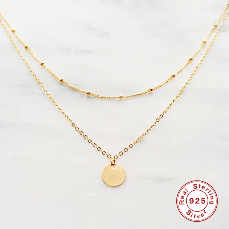 Aide 925 Стерлинговое Серебро Золото Круглый кулон колье для женщин двойной цепи ожерелье простые модные роскошные ювелирные украшения