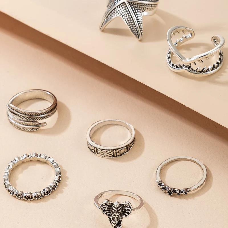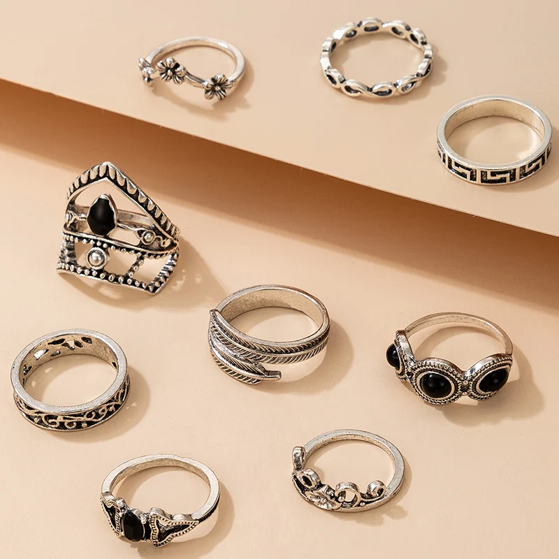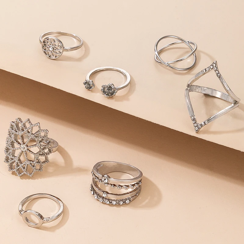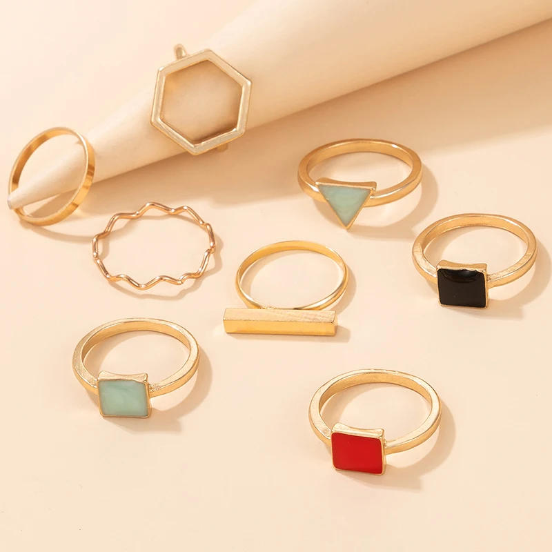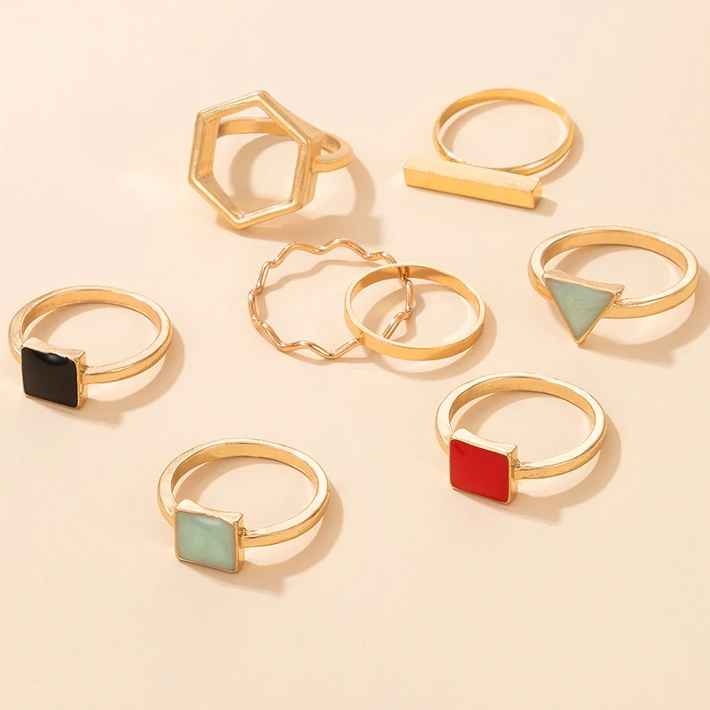 Кольцо женское прямоугольное, 8 шт.компл., в европейском стиле