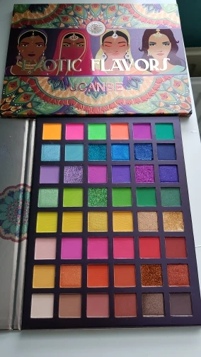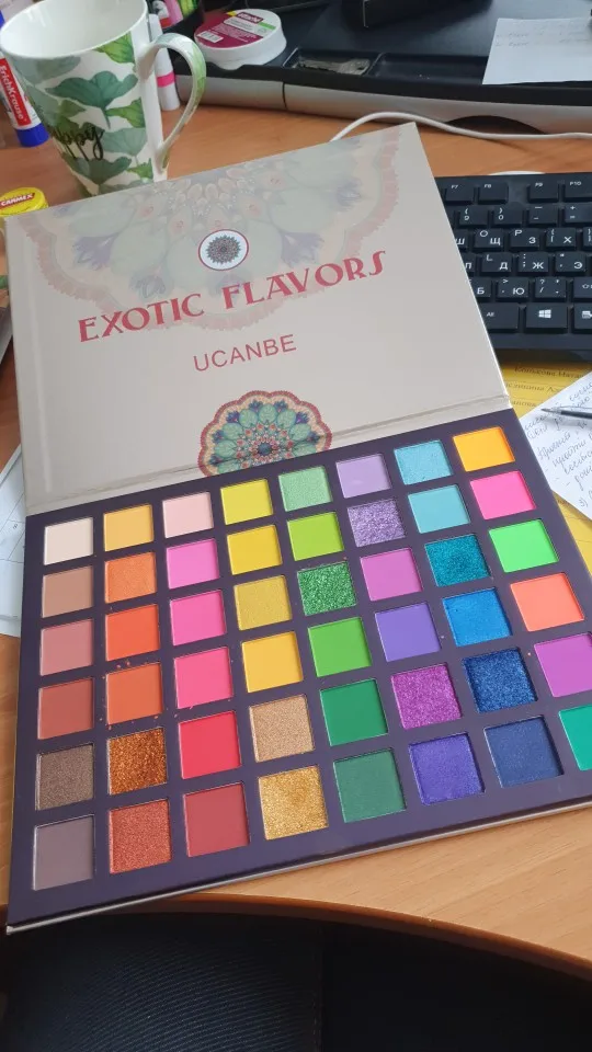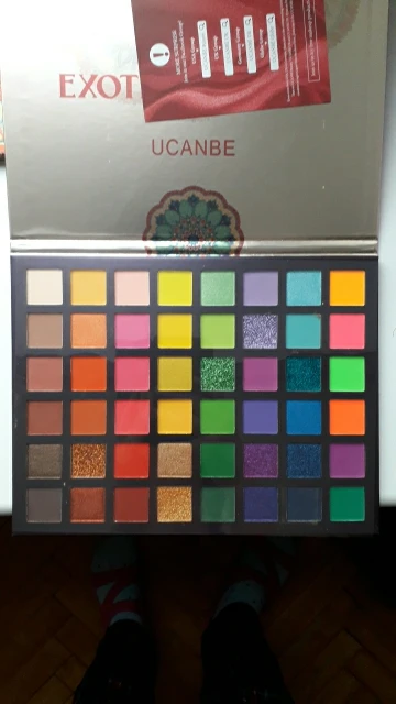 Это уже третья моя палетка от Ucanbe. Очень ею довольна, хоть и долго обдумывала покупку. Выбирала между этой и spotlight — выбором своим довольна. Тут больше оттенков + есть прессованные блёстки + есть неоновые пигменты. Я крашу глаза без праймера или подложки обычно, но ради неонов купила консилер — без него эти пигменты не работают, а с подложкой супер получается. Держатся тени отлично, опять же, даже без базы. Мой первый макияж этой палеткой выдержал концерт и дорогу из области в Москву и обратно (в общей сложности часов 6 минимум). Смывала мицелляркой + просто водой, кожа совсем чистая осталась, не окрасилась. Пигментацией и текстурой теней довольна, шиммеры и сатины суперские. Матовые как обычно выше всяких похвал. Позже дополню отзыв ещё фотографиями по возможности. Палетка отличная!
