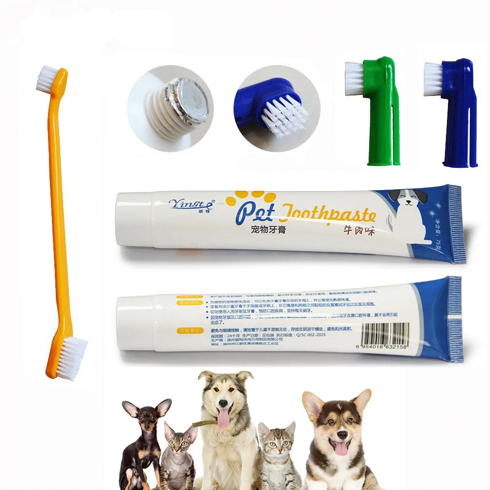 Набор зубных щеток для собак и кошек, зубная паста с ванильнымговяж...