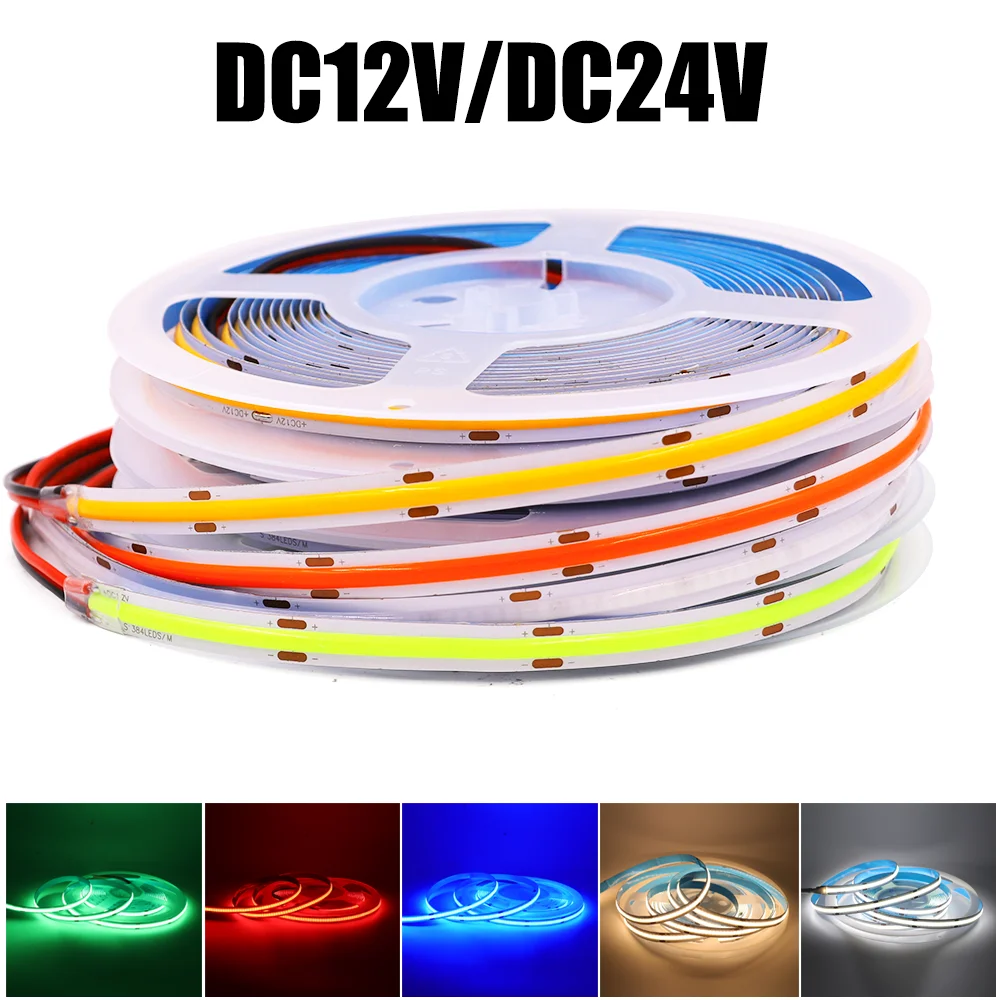 Светодиодные ленты светильник DC12V 24V гибкий COB Светодиодные ленты e 384 528 светодиоды высокой плотности Светодиодная лента диод с регулируемой яркостью FOB линейный светильник s