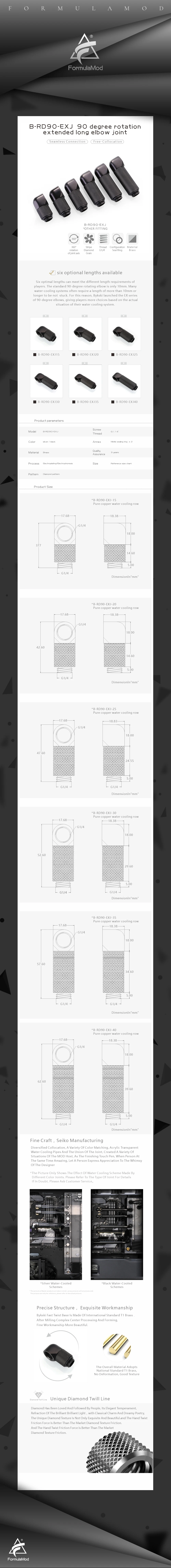 Bykski B-RD90-EXJ 90 градусов поворотный фитинг удлинитель колено штекер-гнездо черныйсеребристый 15-40 мм