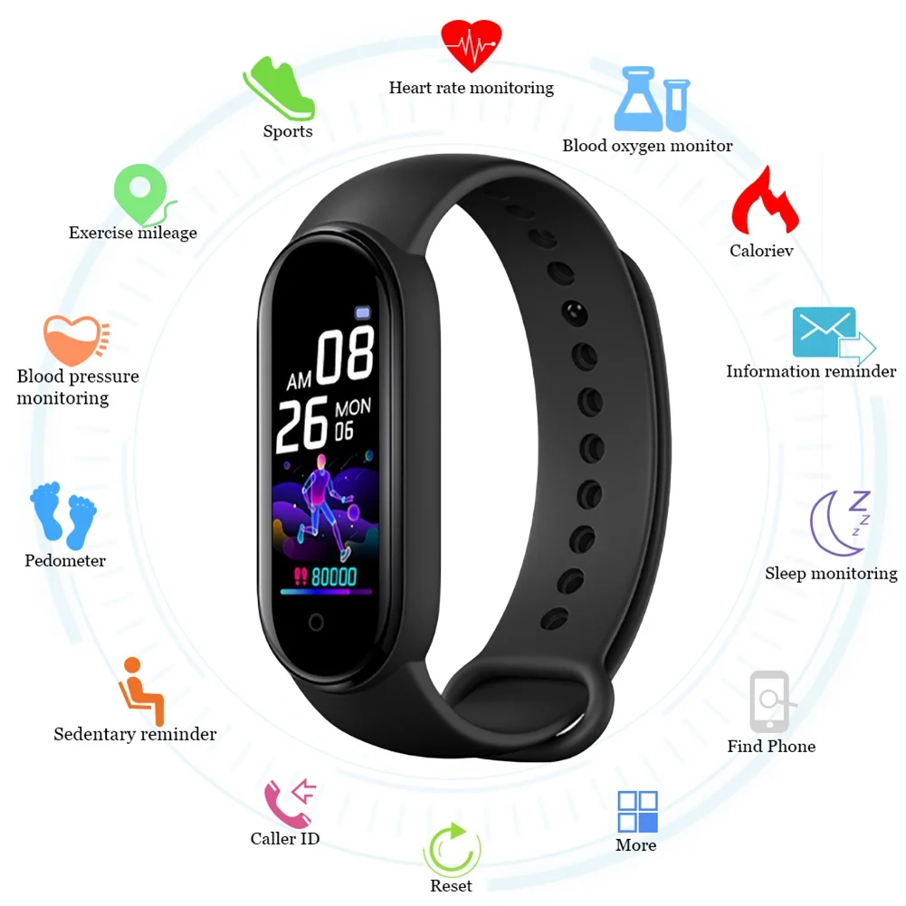 Цветной смарт-браслет M5, монитор сна, сенсорный экран для сердечного ритма давления