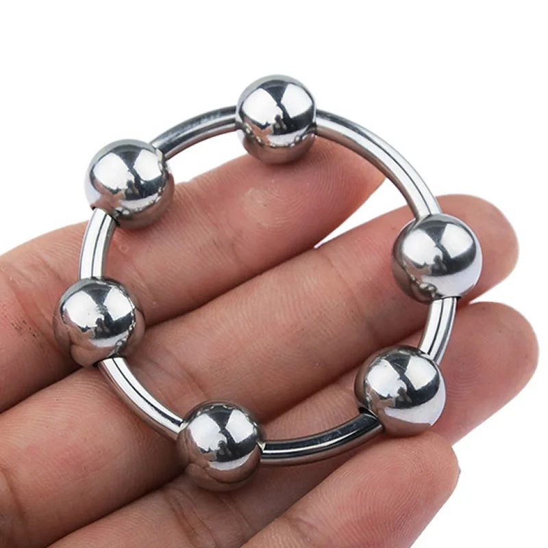 6 бусин, металлическое кольцо на пенис, секс-игрушки для мужчин, мужское кольцо на пенис из нержавеющей стали для задержки эякуляции, стимулятор головки, кольцо на пенис