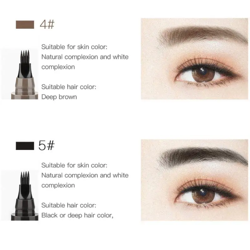 Жидкий карандаш для бровей, водонепроницаемый карандаш для бровей, 4 вилки, кончик, тонкий эскиз, цветная ручка для татуажа бровей, жидкая водная ручка для бровей