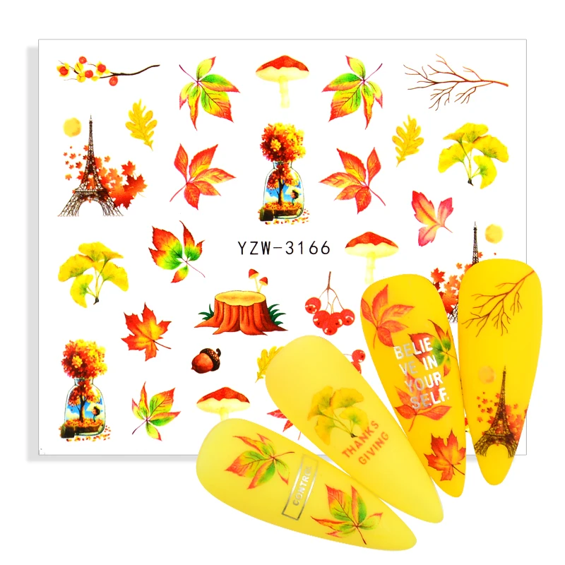 1 лист ногтей наклейки осенний узор в виде кленового листа для ногтей серии для ногтей, переводятся на ногти с помощью воды, Переводные бумажные наклейки для ногтей художественные украшения сделай сам инструменты