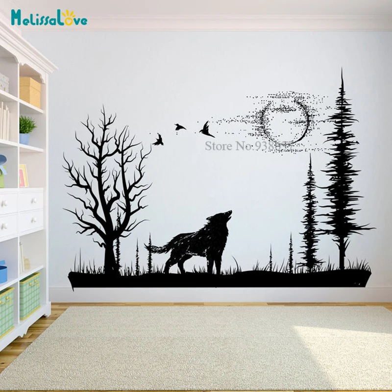 Натуральный лес волк собака аниме Наклейка на стену дерево декор для детской гостиной домашнее украшение съемные виниловые наклейки BD022