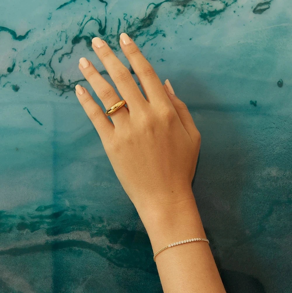 Очень мило. Размер 8 идеально подходит для меня, и это очень красивое золото, не Ультра яркое или желтое.