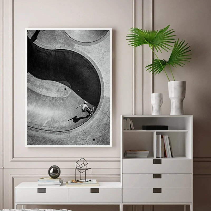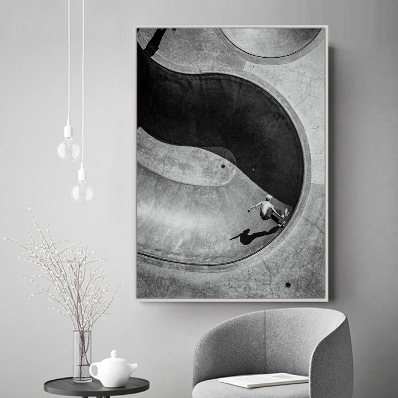 Настенная Картина на холсте скейт-парк Венеции, настенный плакат черно-белого цвета, украшение для дома, гимнастика, Модульная картина, без рамки