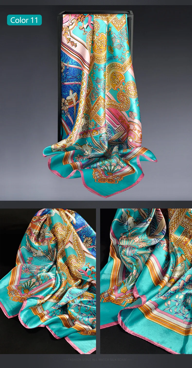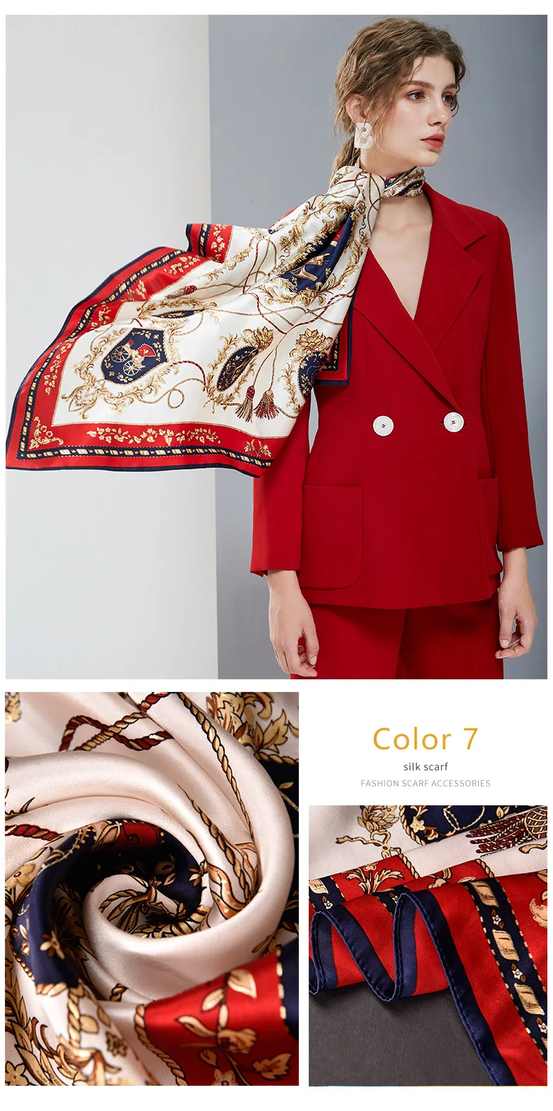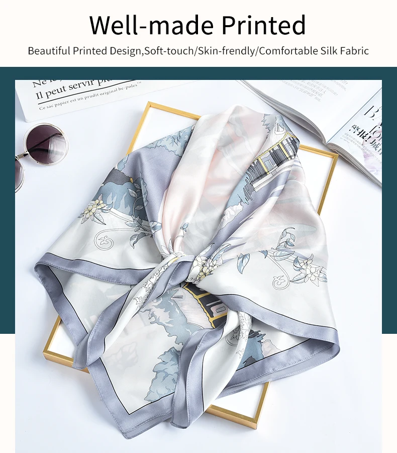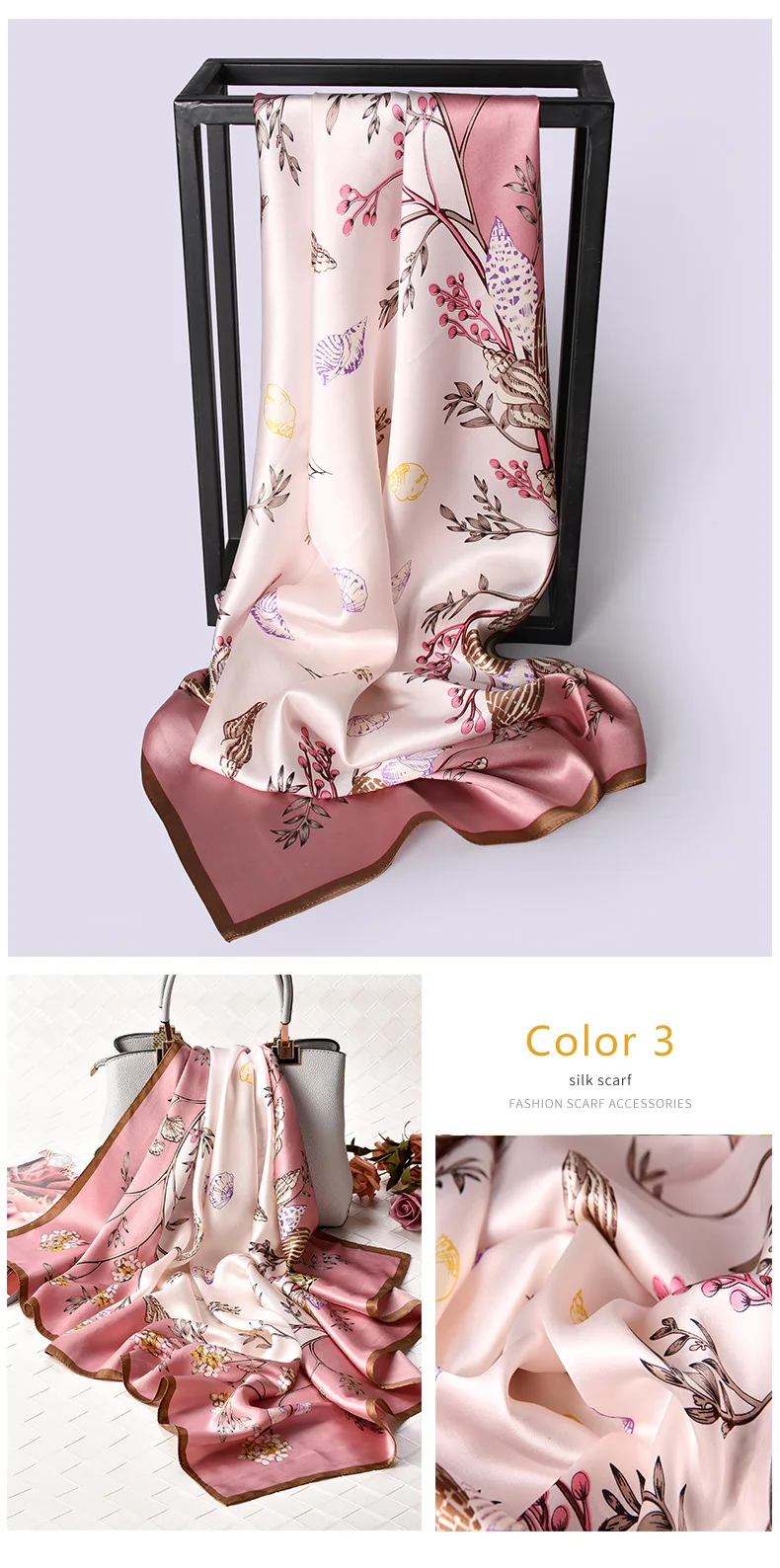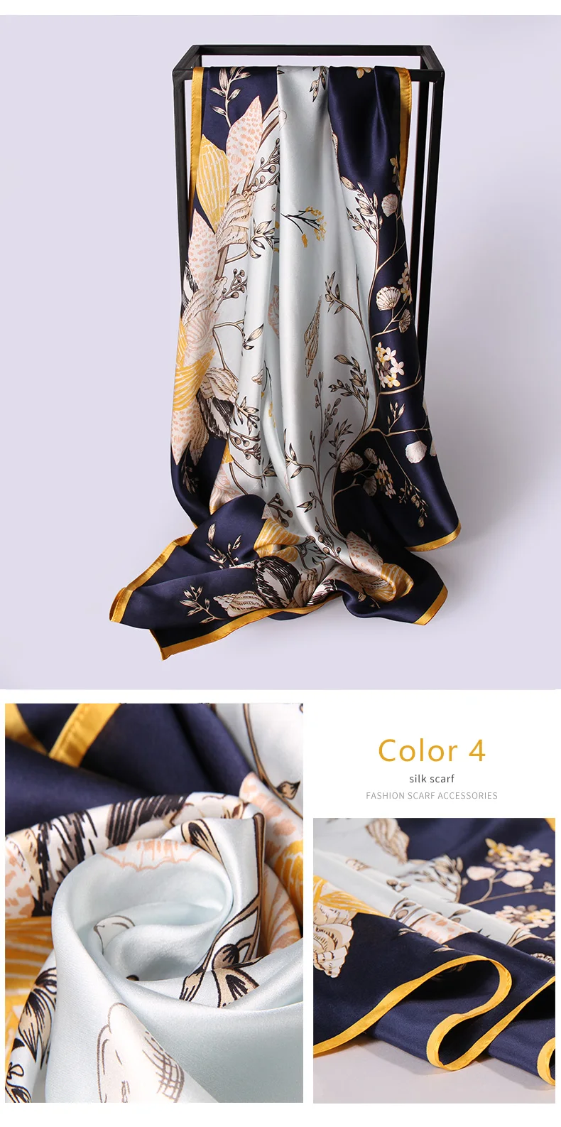 100% натуральный шелк, квадратный шарф для женщин, шарф с принтом, головной платок из натурального шелка, большая бандана из чистого шелка, женский платок 88x88 см