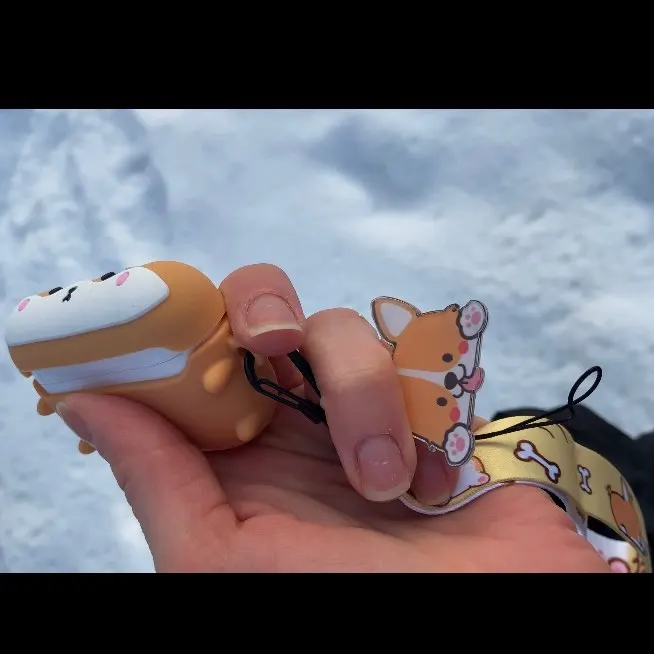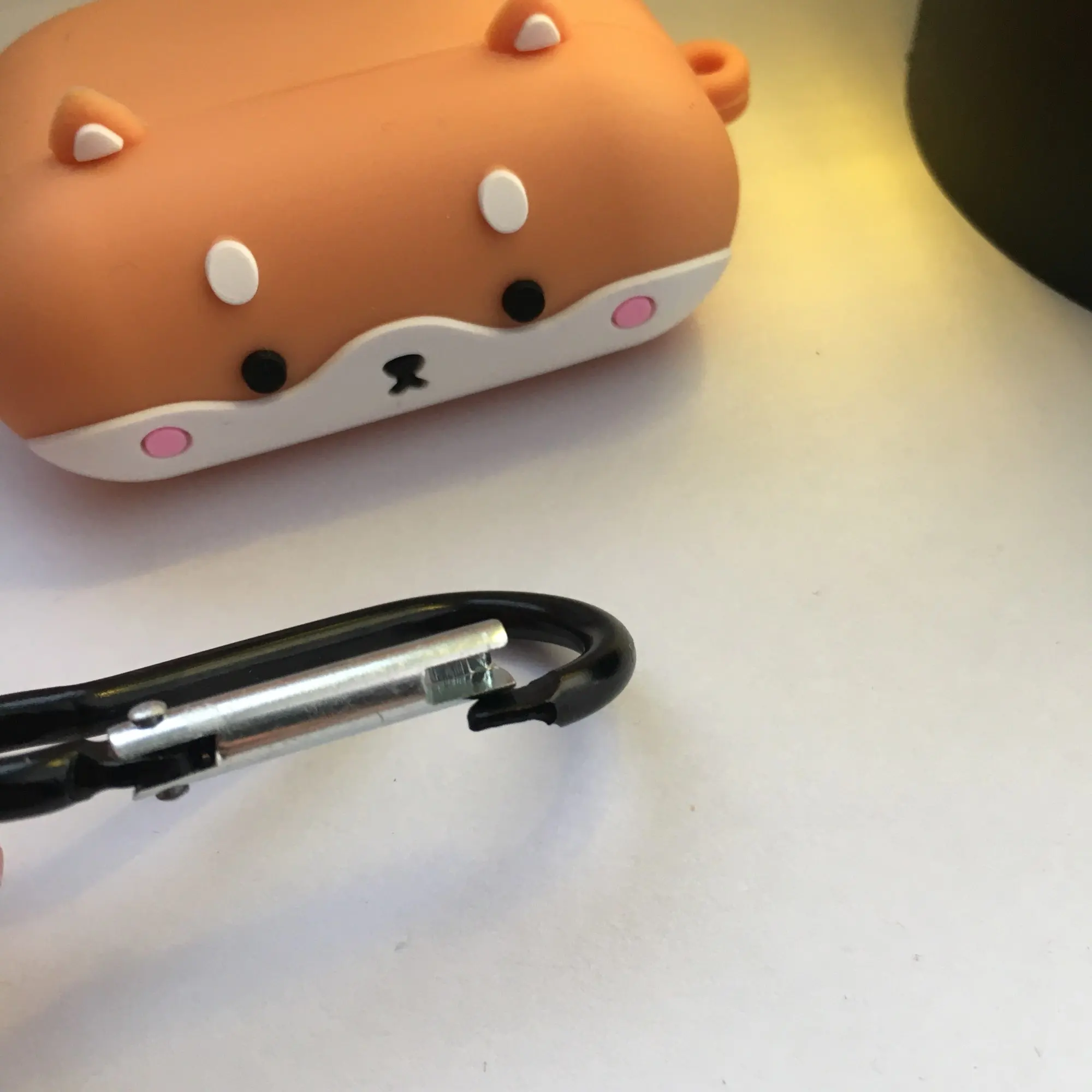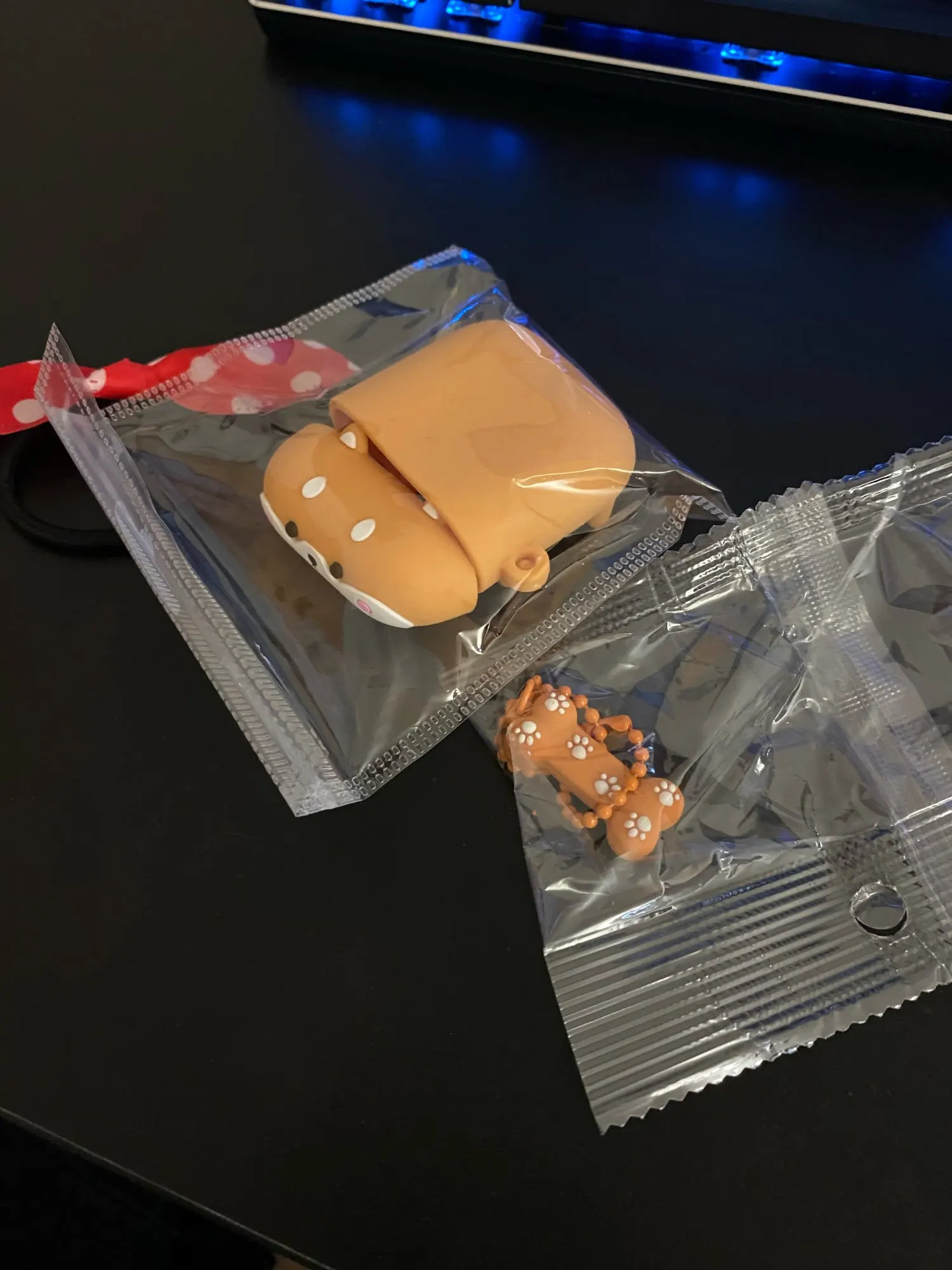 Очень милый чехол! Прибыл в течение 21 дня, и продавец включил Бесплатный подарок галстука для волос. Хорошо подходит для моего AirPods. Мне особенно нравится, что есть более тонкая область, поэтому передний светодиод светится через корпус. Очаровательная цепочка для ключей в форме кости. В комплект также входит карабин. Небольшая вещь для улучшения будет включать крышку для зарядного порта. Это отличный продукт, который я настоятельно рекомендую.