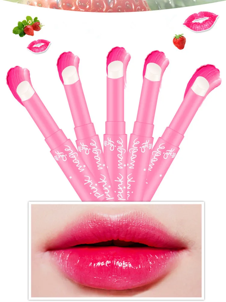 1 шт., Женский бальзам для губ, клубничный, меняющий цвет при температуре, розовый цвет, цвет увлажняющий питательный, губная помада, красота, уход за губами