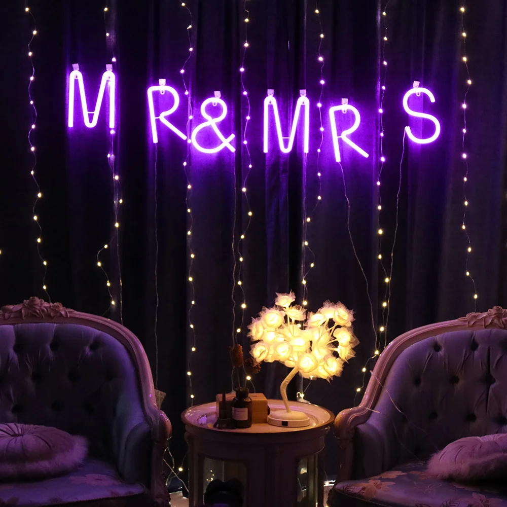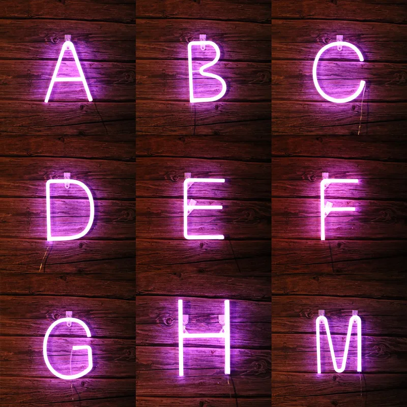 Светодиодная неоновая гирлянда с фиолетовым алфавитом, рождественское освещение с питанием от USB и питанием от батарейки, комнатное украшение для спальни, настенная гирлянда