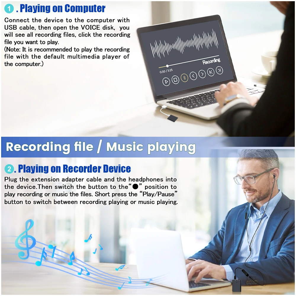 • Два режима записи: один-режим записи с голосовым управлением, другой-режим непрерывной записи.• Два режима воспроизведения: поддержка игры в компьютере и наушниках.• Два способа установки параметров записи: инструмент «параметры записи» и «заводской» документ, они синхронизируются.