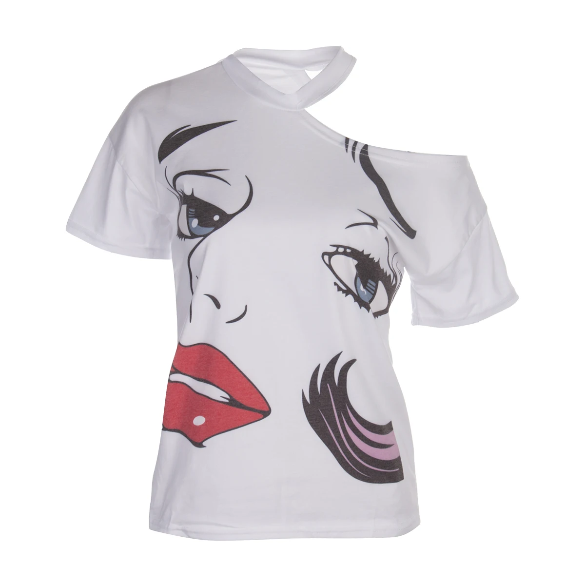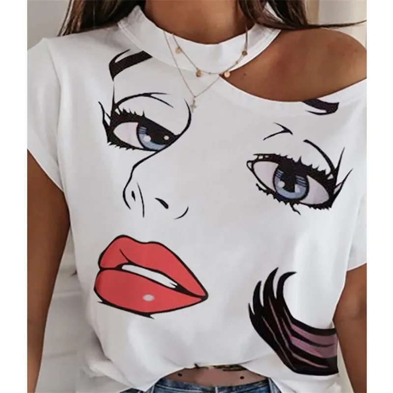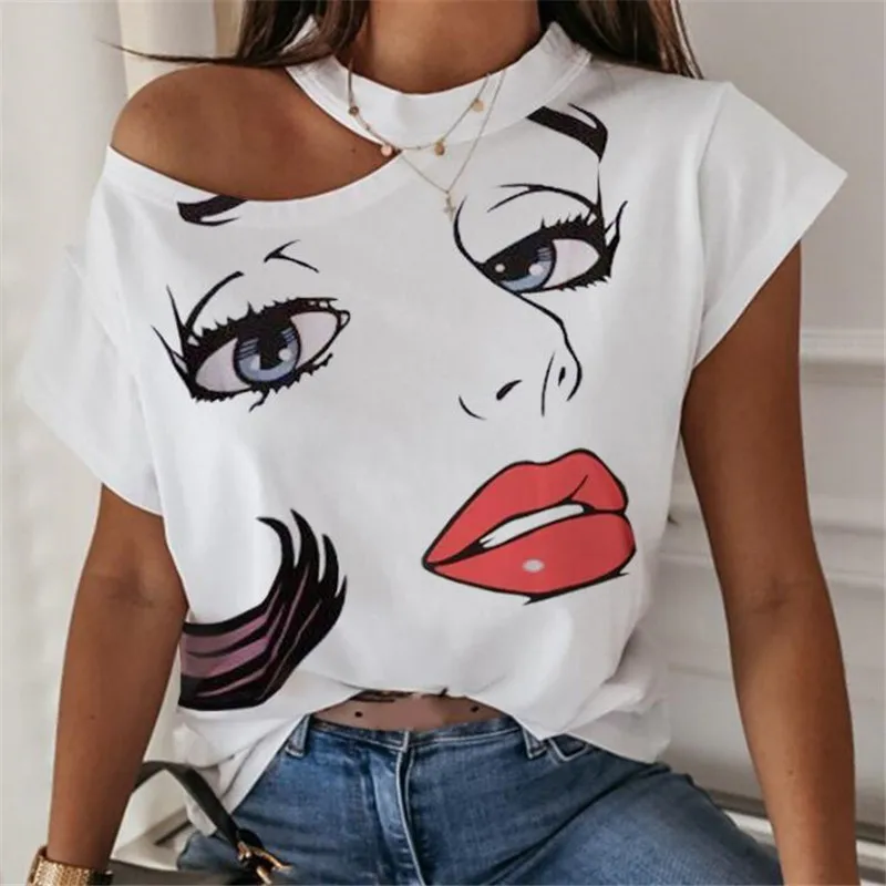 Футболка женская с принтом губ и ресниц, уличная одежда принцессы в стиле Харадзюку, с коротким рукавом, с открытыми плечами, модная Милая рубашка