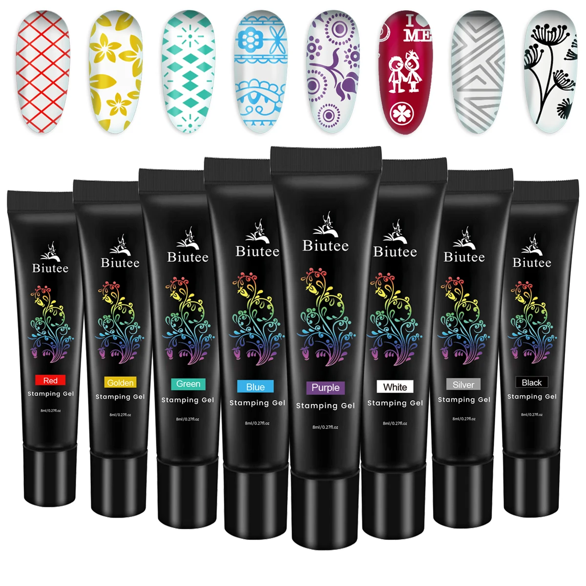 Набор гель-лаков для стемпинга ногтей Biutee, 8 мл, УФ-Гель-лак для пластины для штамповки ногтей