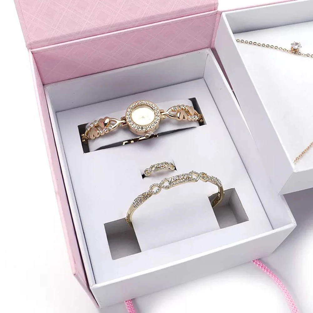 Женские кварцевые часы JESOU с кристаллами, дизайнерский браслет, ожерелье, кольцо, часы, комплект женских ювелирных изделий, модные золотые часы, женские подарки