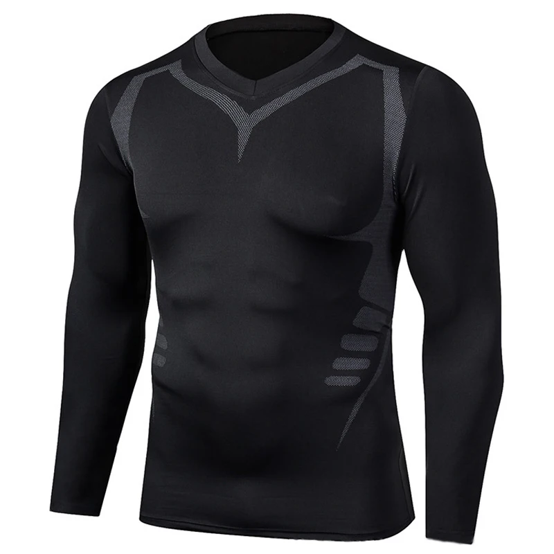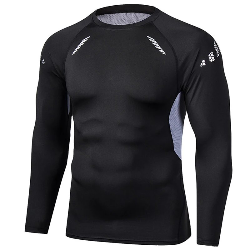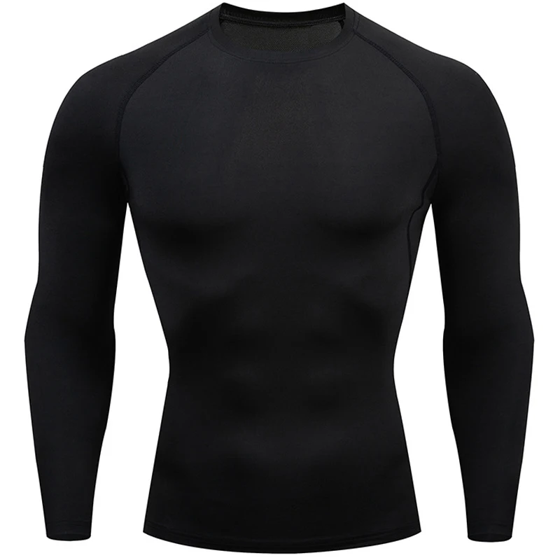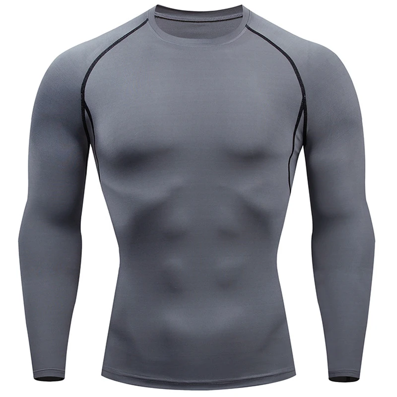 Мужская спортивная футболка, быстросохнущая футболка с длинным рукавом, Мужская компрессионная футболка для тренажерного зала, фитнеса, бега, спортивные однотонные топы для тренировок, мужские футболки