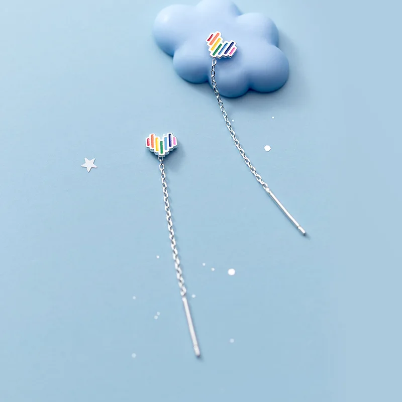 WANTME милое разноцветное сердце любовь кисточкой, серьги со шпилькой, для женщин, натуральная 925 стерлингового серебра подростков Chic уха линия ювелирных изделий