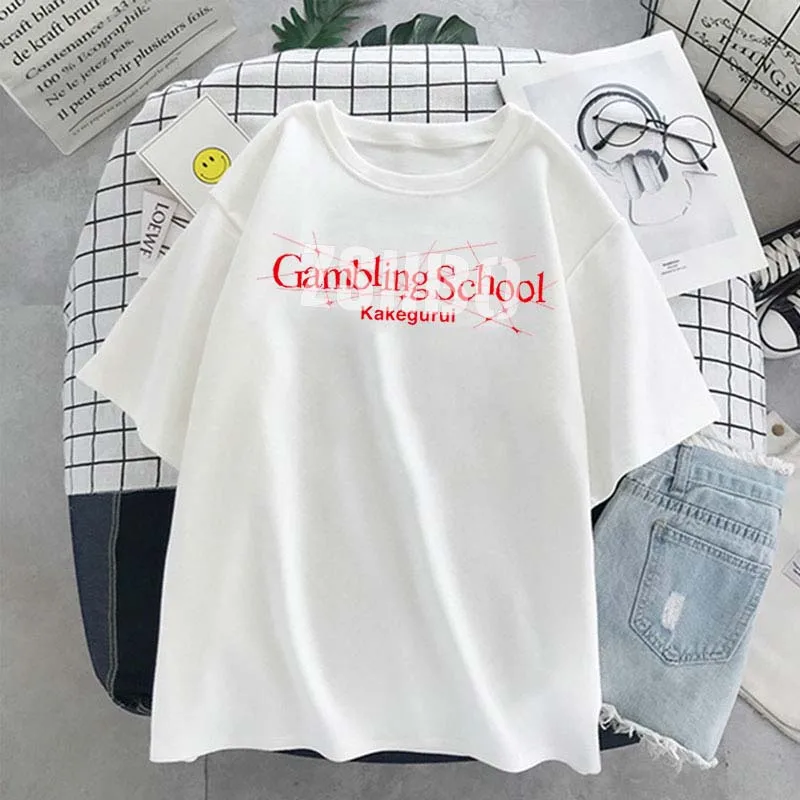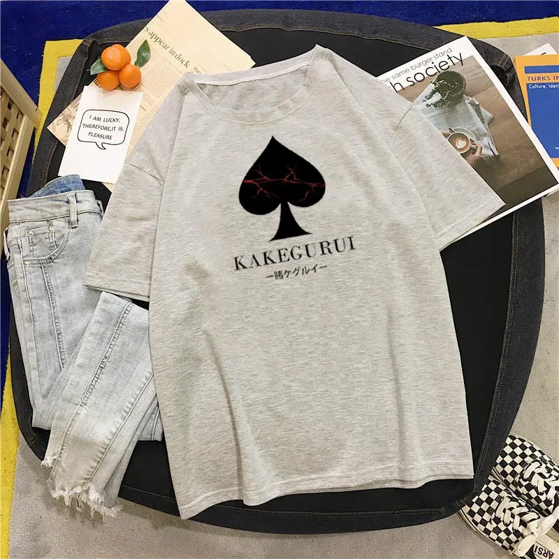 Женская летняя футболка Kakegurui XX аниме футболка с принтом Футболка для женщин Harajuku с коротким рукавом и О-образным вырезом туалеты Топы азартные игры Школьная в готическом стиле Тройник