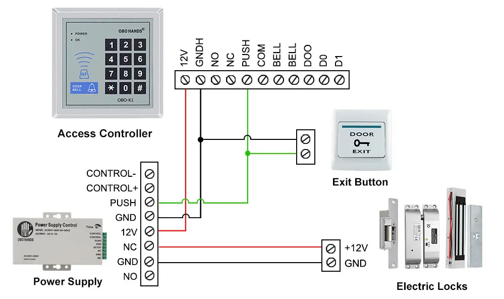 1. Этот источник питания 12В/3А. Подходит только для управления одним замком. 2. С управлением, Push, GND, DC12V, NC, без порта, может работать со всеми видами электрических замков. 3. С регулировкой задержки времени 0-30 секунд. 4. Рабочее входное напряжение AC90-260V, больше свободы. 5. Меньшее энергопотребление и высокая мощность. Небольшой коммутационный транзистор.