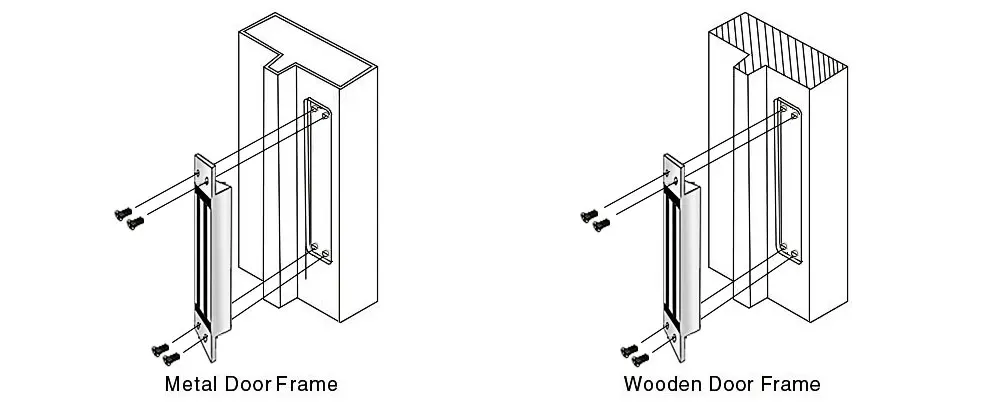 Посмотрите на дверь из помещения, если дверь плоская или дверная рама менее 3 см, вам нужно добавить L-образный кронштейн. Размер кронштейна Д: 170*34*25 мм (Д/Ш/В) Комплектация: 1 * контроллер доступа Стандартный магнитный замок 1*180 кг 1 * L кронштейн 1 * блок питания 1 * Кнопка выхода двери 10 * RFID брелоков 1 * Руководство пользователя