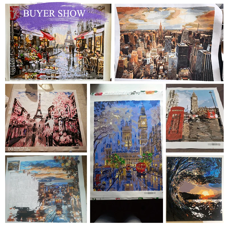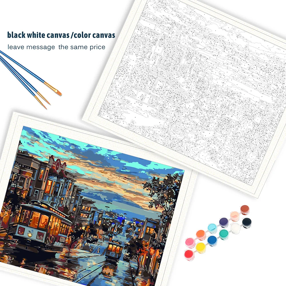 Набор для рисования по номерам на холсте, с изображением городского пейзажа