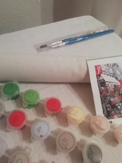 Вы получаете холст, кисть и краски. Цена-отличная.