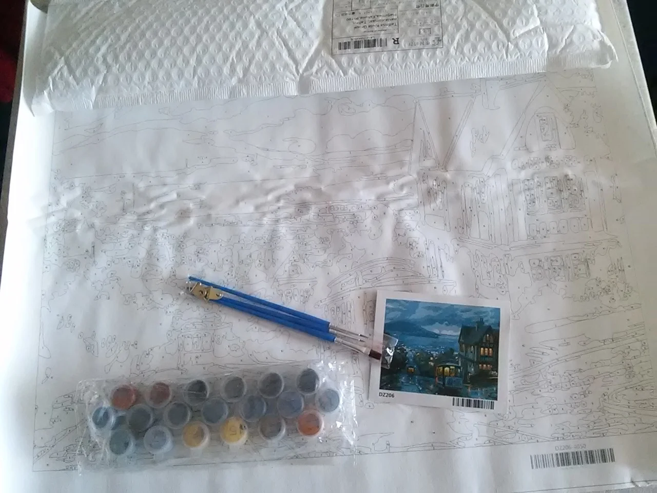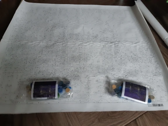 доставка очень быстрая,трек отслеживался. печать на картине довольно мелкая,много деталей. комплект полный.