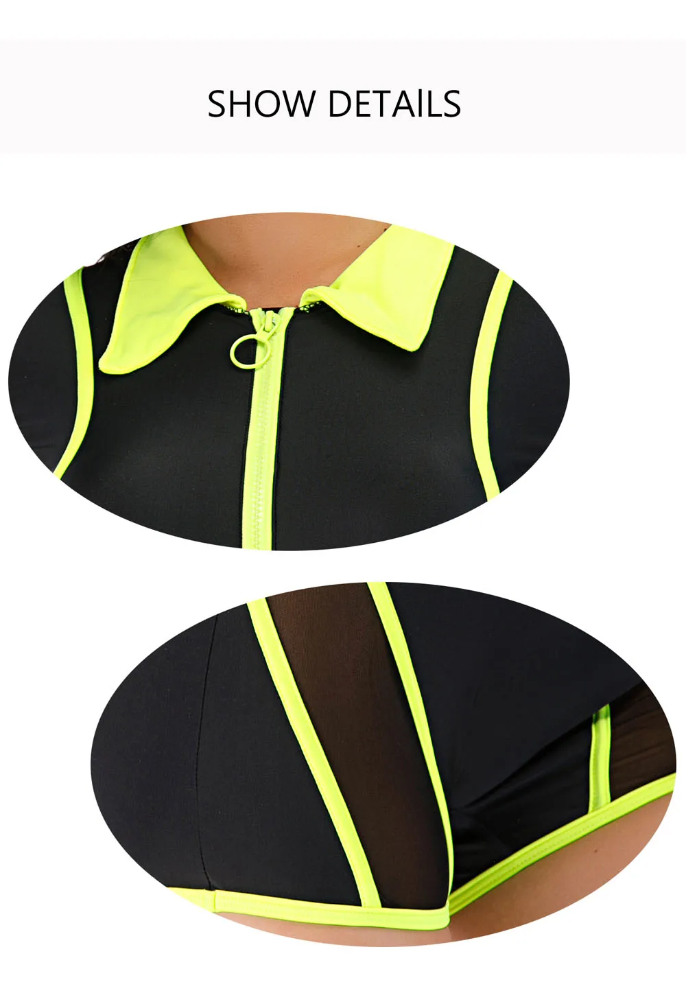 Женский слитный купальник на молнии спереди с коротким рукавом и пр...