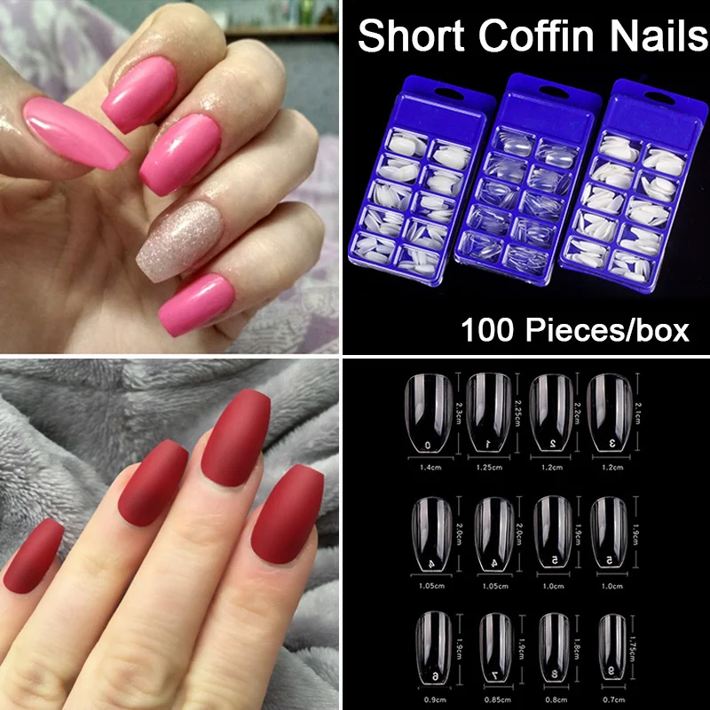 100 шт.кор. короткие гвозди, накладные ногти с полным покрытием, накладные ногти в форме балерины, акриловые накладные ногти, 10 размеров, нажимные ногти