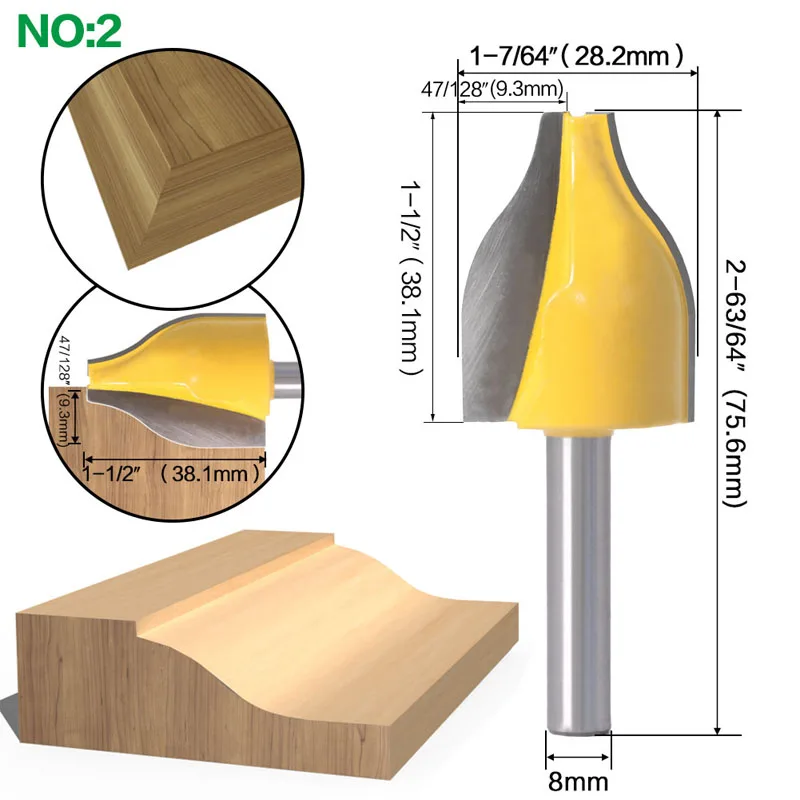 Фреза для обработки панелей с хвостовиком 8 мм, вертикальная, Ogee,...