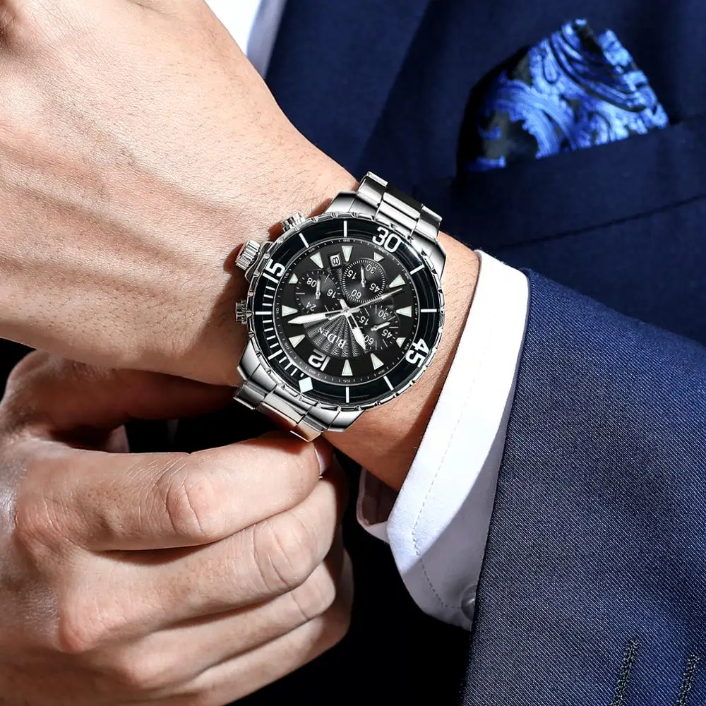 Часы BIDEN мужские, 2020, большой циферблат, водонепроницаемые, деловое платье, B-S