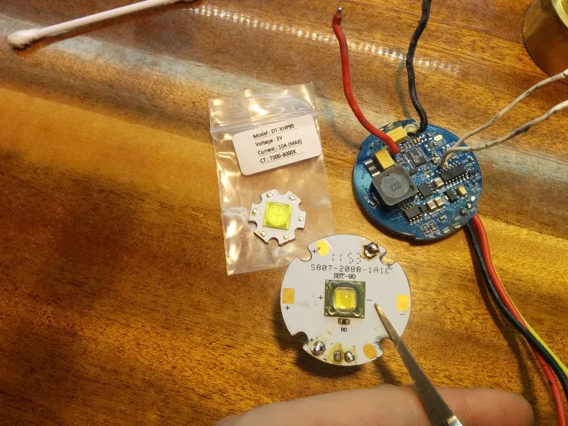 хотел поменять светодиод в старом фонарике, но этот греется так, что даже отпаиваются контакты