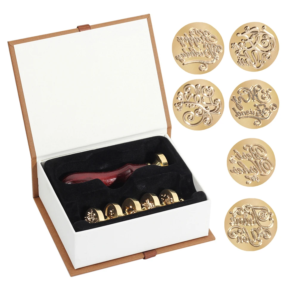 Набор штампов для восковых печатей, 6 шт., латунные головки, деревянные ручки для запечатывания пригласительных открыток, конвертов