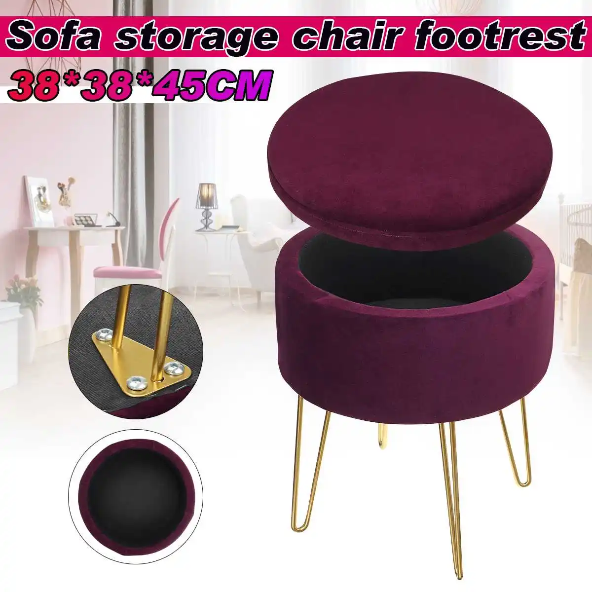 Характеристики:-- Тип: Подножка кресла для хранения дивана-- Цвет: фиолетовый/черный/серый-- Размер: 38 см x 38 см x 45 см/15 дюймов x 15 дюймов x 17,7 дюймов-- Материал: бархат-- Комната: гостиная